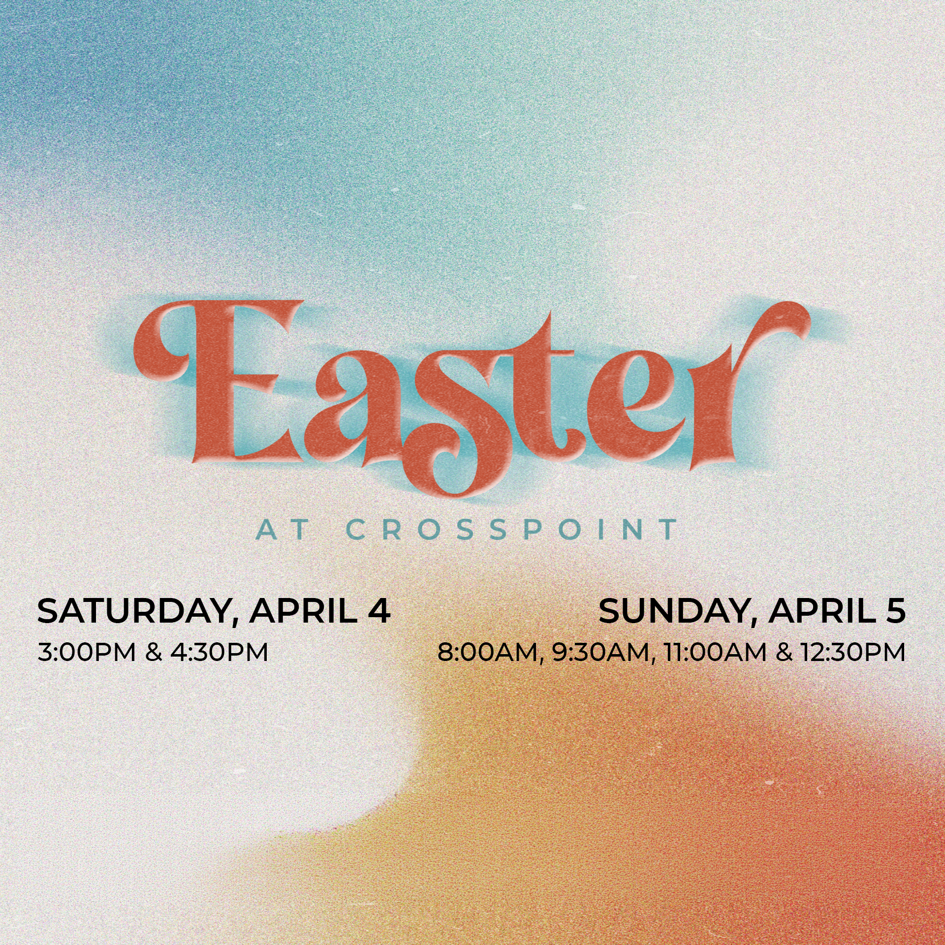 Sunday, April 5 - 8:00 AM, 9:30 AM, 11:00 AM & 12:30 PM